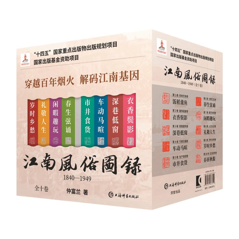 在大陸國家出版基金與上海文化發展基金會圖書出版專項基金共同資助下,當代著名民俗學家、華東師範大學教授仲富蘭集四十年研究之大成《江南風俗圖錄(一八四○︱一九四九)》(全十卷)由世紀出版集團上海辭書出版社正式出版。