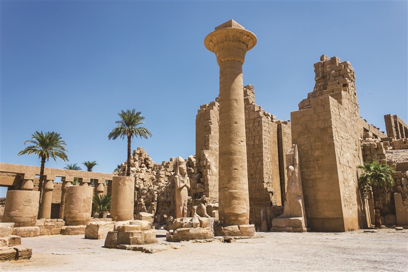 埃及宗教建築如卡納克神廟(Temple of Karnak)透過巨大的柱廊、密集柱林與陰影空間營造出神祕與莊嚴的氛圍。圖/123RF