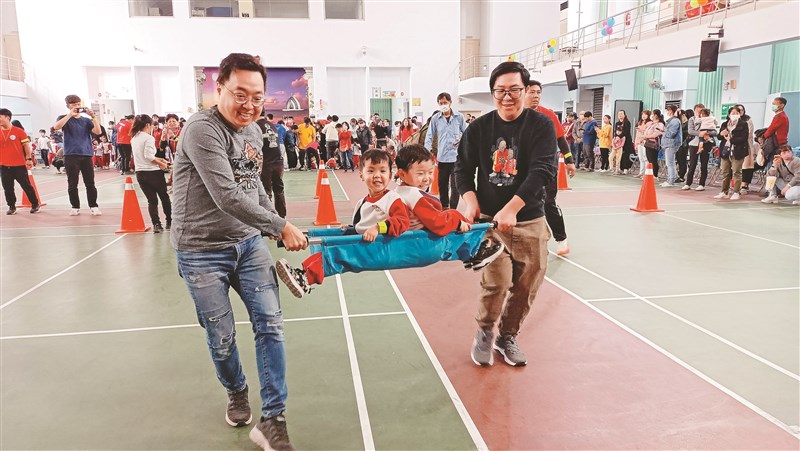 佛光山慧慈幼兒園運動會,平日繁忙的家長放下萬緣,單純享受與孩子互動的喜悅。圖/慧慈幼兒園提供