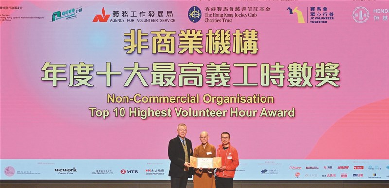 「香港義工獎」旨在表揚於義務工作領域表現卓越的個人及團體,香港佛光道場在「非商業機構」界別中脫穎而出,由香港佛教學院導師明慧法師、義工培訓組義工陳澤明,以及來自典座組、社教組等多個團隊義工代表出席頒獎典禮並受獎。