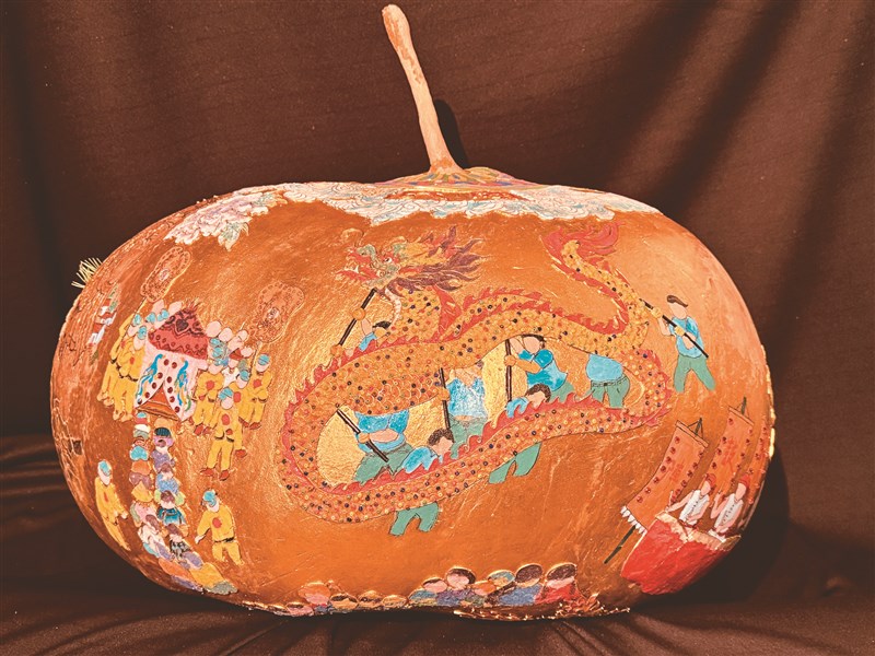 龔一舫葫雕創作近五十年,素材需經雕、刻、烙、鏤、黏塑、範制、掐絲、染繪等各式工法;劉漢文的奔馬畫作充滿張力,展現強烈動感;陳盈如天馬行空的《門神》系列,色彩豐富、幽默逗趣;陳建智、黃基興則以流暢細緻的刀法,精準呈現劍獅的線條與神韻。