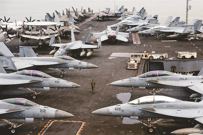 中東戰雲密布,美軍緊急將原本部署於印太地區的「林肯號」航空母艦調往中東,以填補戰力空缺並威攝伊朗。圖為「林肯號」2024年11月停靠馬來西亞巴生港。圖/美聯社