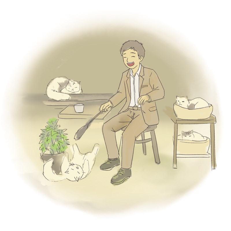 從小就熱愛貓咪的我,希望能收養街頭的流浪貓,先為牠們洗去身上的汙垢,再給牠們一個溫暖的家。透過每天的陪伴,讓牠們對人類不再畏懼。我會引導牠們乖乖地躺在客人的懷裡,讓客人撫摸細緻的皮毛,或是體驗餵食點心的樂趣。對我而言,能擁有這些小生命的陪伴,就是來到這家店最大的收穫。