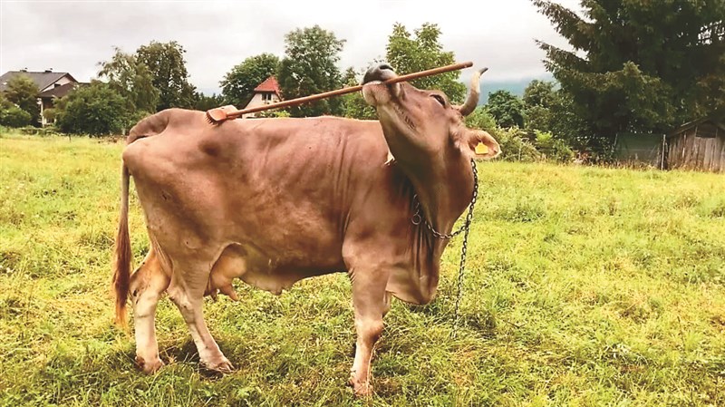 【本報綜合外電報導】《華盛頓郵報》指出,牛跟人一樣也會覺得癢,然而若把長柄刷遞到奧地利一頭13歲母牛維洛妮卡(Veronika)面前,牠會叼起並用舌頭捲住木柄,用刷毛一端刷背,或用木柄一端輕撫癢處。維洛妮卡沒有接受過任何訓練。科學家表示,這是首度經實驗證實的牛隻使用工具案例,這項19日刊於《當代生物學》(Current Biology)期刊的研究,顯示人們可能長期低估牛的認知能力。