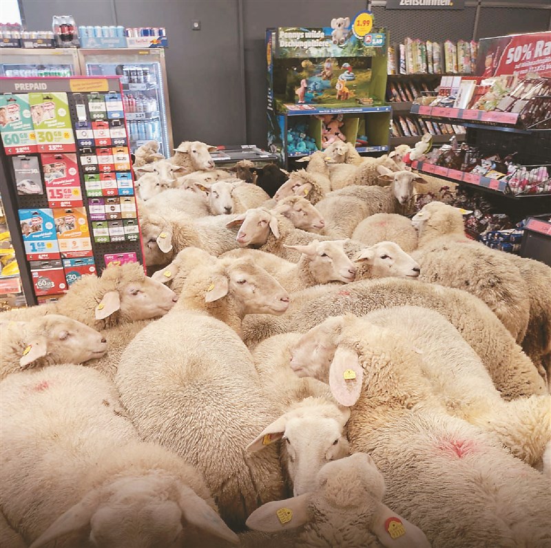 【本報綜合外電報導】德國巴伐利亞一座小鎮的折扣超市,日前意外闖入約50隻脫離羊群的迷途綿羊,牠們在店內走道間奔跑探索,停留約20分鐘,似乎特別喜歡收銀區,因為那裡聚集顧客與店員,讓顧客又驚又喜,最後才被引導離開。