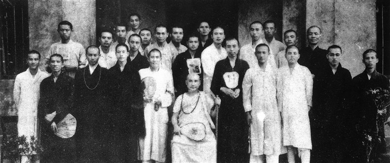 慈航法師(中坐者)與大陸來台的青年學僧星雲大師(第二排右4)等人,在汐止彌勒內院合影。