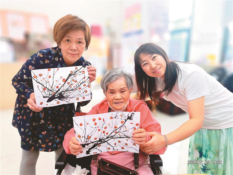 她做出兩幅作品,將其中更漂亮的那幅給母親拿著,幫她拍照。老人家的手要持穩一張紙也是費力的,她便幫母親扶著作品拍,拍好後放大手機螢幕展示給母親看。望著那一幕幕,我鼻子發酸,同時也深深被感動──此刻,她傾盡所有陪伴母親;將來,這些都是她最溫馨最深情的回憶。