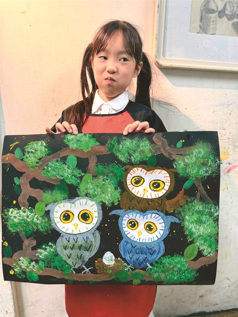 【童畫天地】貓頭鷹剪貼技法 文/李夏綺 |2026.01.21 語音朗讀 23觀看次 字級 大 中 小 步驟一:準備好色紙或回收紙,接著使用剪刀剪出愛心或橢圓形,作為貓頭鷹臉部的基礎形狀,並在剪貼紙上畫出眼睛與嘴巴。圖/布穀鳥兒童美術步驟四:使用粉彩或水彩描繪樹枝、樹葉、月亮與夜空背景,讓畫面更加豐富。圖/布穀鳥兒童美術林倢希/新北市裕民國小二年六班 圖/布穀鳥兒童美術林筠容/新北市思賢國小一年五班 圖/布穀鳥兒童美術林思嫚/新北市康橋國小二年六班 圖/布穀鳥兒童美術步驟三:以蠟筆勾勒出貓頭鷹的身體與羽毛,再搭配水彩上色。可以自由混色增加層次感,表現貓頭鷹不同的姿態與表情。圖/布穀鳥兒童美術步驟二:將剪好的貓頭鷹以膠水固定於黑卡紙上,安排貓頭鷹的位置與大小,完成基本構圖。圖/布穀鳥兒童美術 文/李夏綺藝術的世界裡,「剪貼」是一種充滿想像力與實驗精神的創作方式。早在古時候,人們便懂得將不同元素重新組合,創造出全然不同的視覺樣貌;而在近代藝術史中,剪貼技法更因立體派畫家畢卡索的運用而廣為人知。畢卡索常在半成品畫作中加入紙材、報紙或其他素材,使畫面產生層次與質感的變化,也讓創作多了一些趣味與驚喜。剪貼技法的迷人之處,在於它沒有過多的限制,凡是能夠附著於畫面上的材料,都能成為創作的一部分。透過剪、貼、畫的過程,我們不只是在完成一幅作品,更是在學習觀察色彩、形狀與質感之間的關係,同時培養勇於嘗試的創作膽量。即使沒有美術基礎,只要願意動手實驗,也能激發聯想力,創作出令人驚豔的作品。這一次創作以「貓頭鷹剪貼技法」為主題,帶領大家使用回收紙材剪出愛心形狀,創作出貓頭鷹可愛又充滿童趣的臉蛋。透過剪貼結合蠟筆與水彩的方式,我們不僅能學習構圖與上色,也進一步理解夜行性動物在黑夜中的表現。使用黑色紙張作為背景,可以讓畫面更有神祕感,也使色彩顯得格外鮮明。在創作過程中,我們可以仔細觀察貓頭鷹的外型與羽毛特徵,嘗試以不同色彩混合出層次感,並將背景色彩輕輕帶入創作的主體,讓大家理解「物件會受到環境顏色影響」的視覺概念。最後,只要再加入樹枝、月亮、鳥巢或夜晚星空等情境,就能讓畫面更加完整、生動。使用媒材:剪刀、西卡紙、蠟筆、水彩、保護膠、黑卡紙、膠水等。 前一篇文章 【快樂塗鴉簿】樹懶家族集合 下一篇文章 【創作花園】台南小吃 熱門新聞 01伊朗示威恐2萬死 川普:援助在路上2026.01.1502楓紅常寂光寺2026.01.1503星雲大師全集【傳記】百年佛緣─社緣篇 與佛菩薩感應記 4 - 32026.01.1504倫敦佛光山、法身寺 南北傳佛教倫敦交流2026.01.1505花10年拍檯面下動物 可愛爆表2026.01.1506法華禪寺深化宗教交流 拜會斯里蘭卡駐法大使2026.01.1607【快樂塗鴉簿】月色下的蝴蝶2026.01.1508告急! 全台血庫剩5.3天 O型最缺2026.01.1609500年前素描 找到疑似達文西DNA2026.01.1510南韓樹木穿針織衣 防凍又防蟲2026.01.15 訂閱電子報 台北市 天氣預報 台灣一週天氣預報 相關報導 【快樂塗鴉簿】溫馨甜點店【快樂塗鴉簿】樹懶家族集合【快樂塗鴉簿】煙火【童詩.童思】勇士媽媽【快樂塗鴉簿】我家的咪咪【快樂塗鴉簿】湖面倒影 作者其他文章【童畫天地】自畫像色彩計畫【童畫天地】駱駝水彩渲染技法【童畫天地】 鸚鵡蠟筆彩繪技法