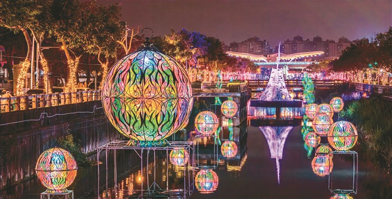 2026年屏東燈節將於明日點亮夜空,今年以縣民公園、萬年溪、勝利星村及內埔龍頸溪為4大燈區,展示超過40組藝術燈飾。客家燈區以「耀動客家」為主題,結合在地故事、世代記憶與創新光影藝術,並融入客家竹藝、藍染、粄食及客家獅等文化符碼,再現客家多元樣貌。圖為屏東燈節的美麗光影。 圖/屏東縣政府提供