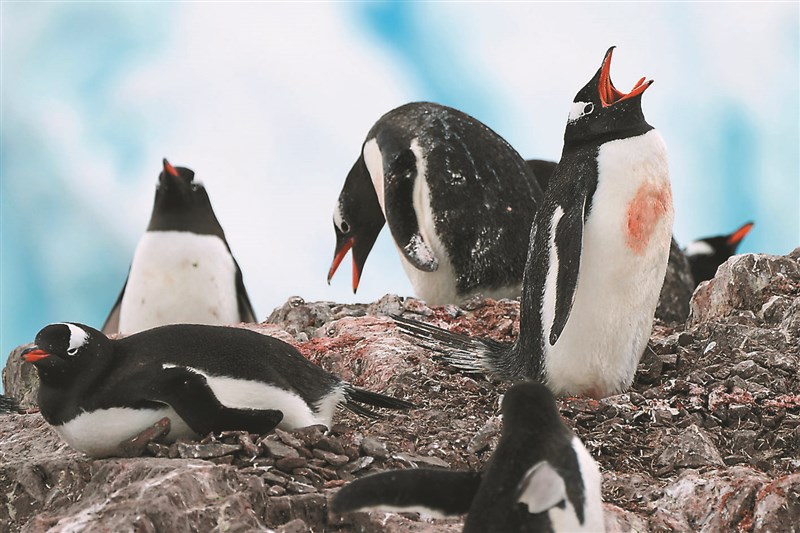 研究顯示南極洲迅速變暖,企鵝繁殖季節正以創紀錄速度提前。圖為南極的巴布亞企鵝築巢。圖/美聯社