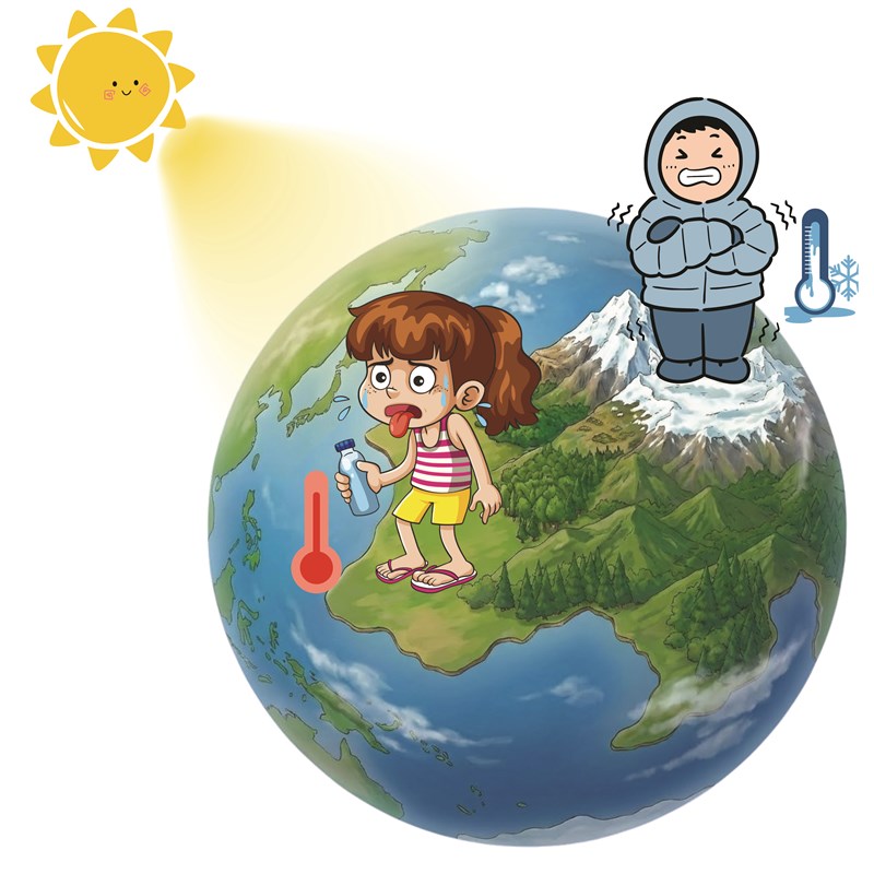 問題是,玉山山頂只比地面離太陽近4公里而已,即使地球最高的珠峰也才近9公里不到,跟1.5億公里這麼遙遠的天文數字比起來,根本微不足道,小得幾乎不會對山腳與山頂的溫度產生任何影響。也就是說,不會因為爬到幾千公尺高山上,那裡就會多得到一些太陽光而變得比較熱。