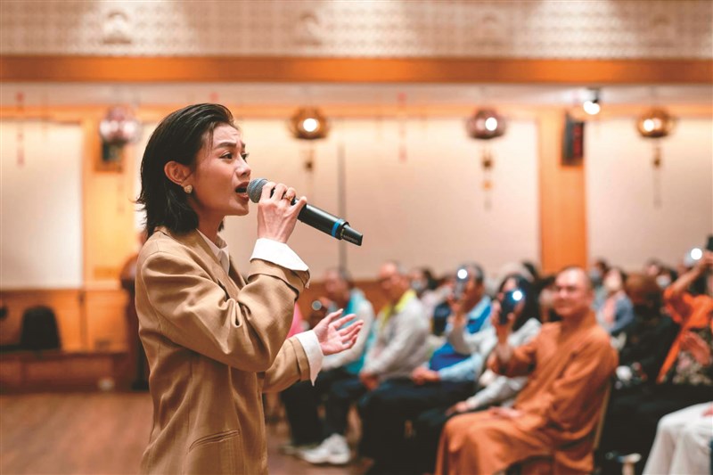 金曲歌后朱海君獻唱組曲,為家鄉、親人與大眾獻上平安祝願。圖/佛光山旗山禪淨中心提供