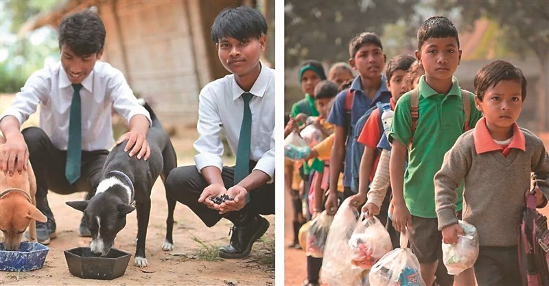 【本報綜合外電報導】在印度東北部阿薩姆邦帕莫希村,孩子們上學時往往背著兩個書包:一個裝書本,另一個裝著清洗、分類好的塑膠袋與塑膠瓶。對就讀「阿克沙爾論壇學校」(Akshar Forum)的學生而言,這些塑膠垃圾就是學費。