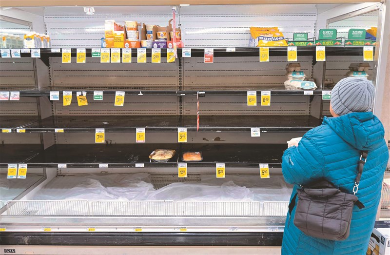 大規模冬季暴風23日侵襲美國20多州,逾2億美國民眾面臨凍雨和暴雪,紐約州洛維鎮的積雪被強風颳起漫天飛舞;一名維吉尼亞州阿靈頓婦女趕到超市採購物資,貨架上食物已經被搶購一空。圖/美聯社、法新社