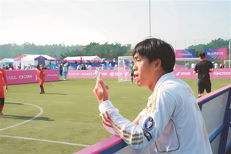 羅成勉在殘特奧會盲人足球賽事場邊執教。圖/新華社