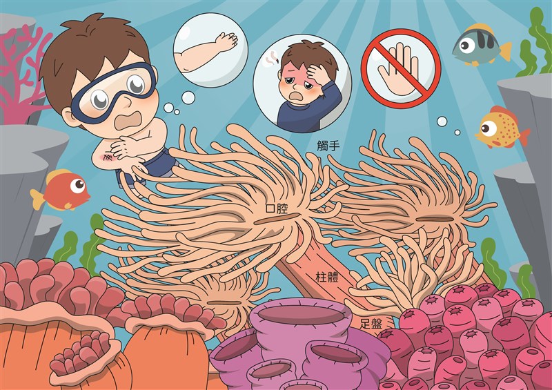 由於海葵有毒,被海葵觸手上刺細胞的刺絲刺入體內,輕者則會有皮膚刺痛、紅腫或發癢,重者則會有水腫或發熱現象產生。