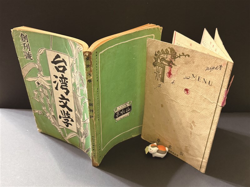 「山水亭」一九三八年菜單與一九四一年出版的《臺灣文學》創刊號。圖/黃議震