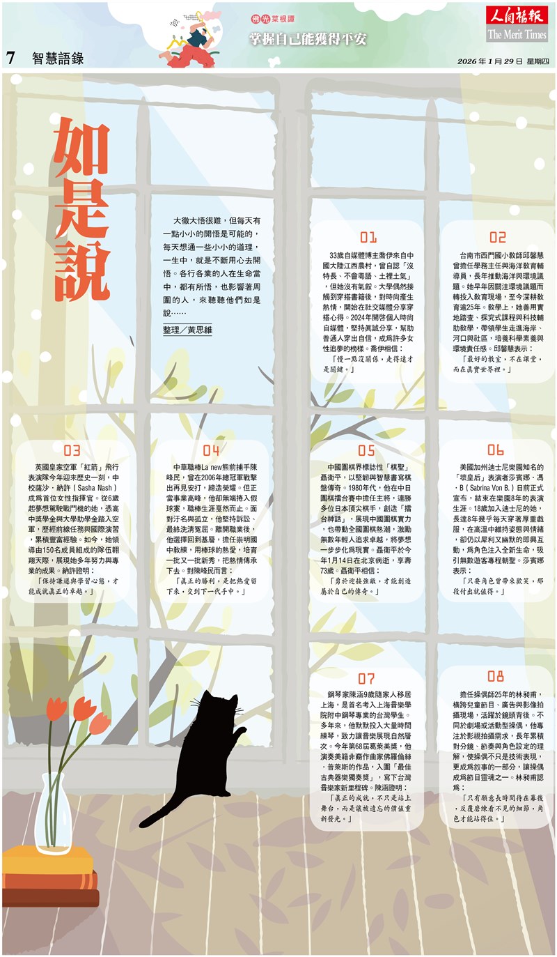 大徹大悟很難,但每天有一點小小的開悟是可能的,每天想通一些小小的道理,一生中,就是不斷用心去開悟。各行各業的人在生命當中,都有所悟,也影響著周圍的人,來聽聽他們如是說……