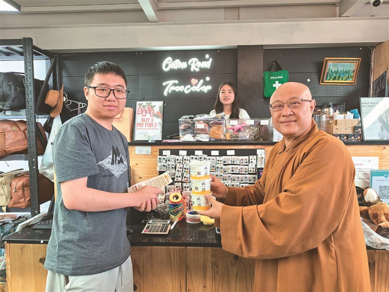 佛光山南華寺、國際佛光會南非約堡協會,10日於非洲商貿慶祝佛陀成道日,舉辦臘八粥結緣活動。2000碗臘八粥分送至非洲商貿、中國商貿城、中非商貿城、百佳商城、西羅町唐人街及康寧老人院等地,讓不同族群的民眾都能感受佛教文化的人文關懷。圖為南華寺監寺慧行法師(右)送臘八粥給店家。圖/人間社記者千琹