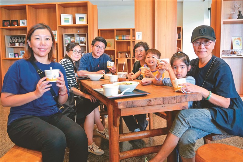 1月26日欣逢佛陀成道日,佛光山南天寺舉辦「慶祝法寶節臘八粥供眾結緣」,特別在南天寺滴水坊與南天大學美術館滴水坊提供臘八粥,與大眾結緣,傳遞佛陀成道的智慧與慈悲。來山信眾與訪客手捧臘八粥,臉上洋溢著溫暖笑容,感受粥中蘊含的祝福與心意。圖為當地居民攜家帶眷在南天寺滴水坊享用臘八粥。圖/人間社記者趙聞暄