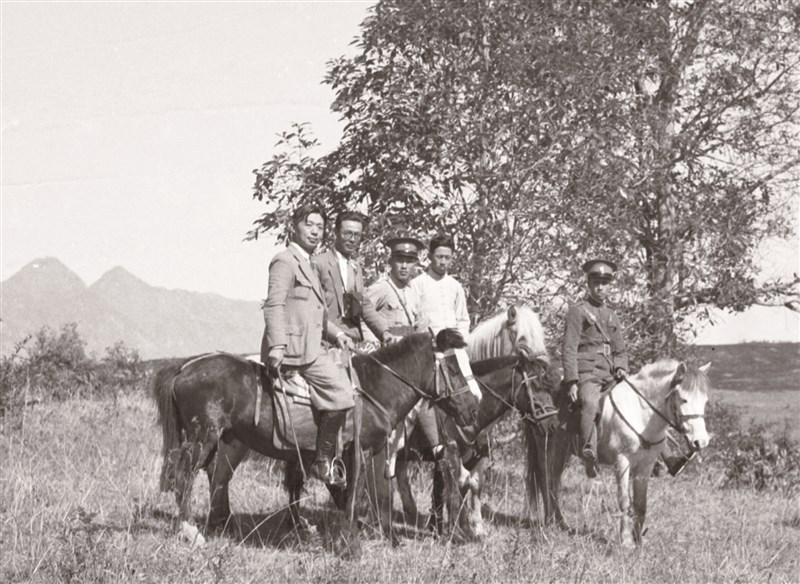 中研院史語所研究人員芮逸夫(左一)與勇士衡(左二)騎著西南馬的照片。圖/中研院史語所