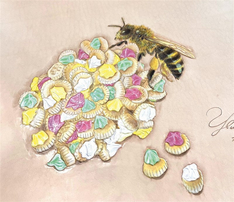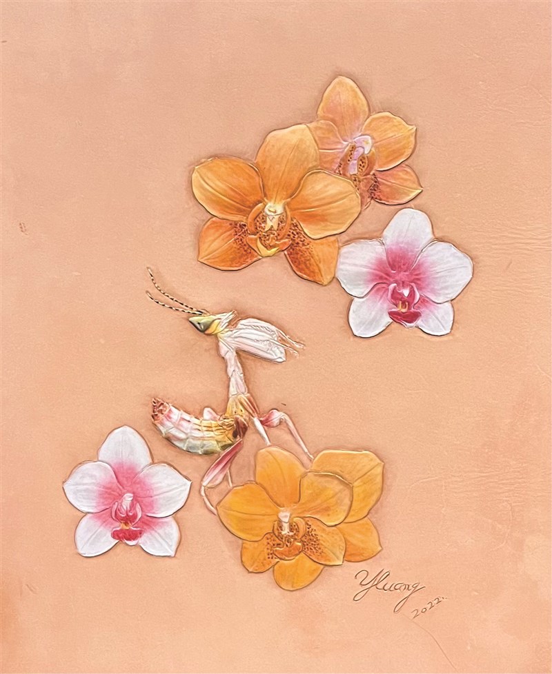 【獻給動物朋友的詩】站成蘭花的螳螂與嘗到幸福滋味的蜂 文/小熊老師 |2026.01.29 語音朗讀 30觀看次 字級 大 中 小 〈神祕的祈禱者〉:站在蘭花上的「蘭花螳螂」收起鐮刀手,彷彿虔誠的祈禱者。圖/黃惠鈴提供虎山藝術館「幸福的滋味」個展作品〈蜜遊冉花裡〉。圖/黃惠鈴提供黃惠鈴在皮包上雕出栩栩如生的圓胸螳螂。圖/黃惠鈴提供〈台灣大虎頭蜂〉,花中之王牡丹與霸氣的虎頭蜂同框。圖/黃惠鈴提供 文/小熊老師她常在動物旁邊雕上植物,「除了昆蟲,台灣的花卉和水果,也都好美麗!」為了留下美麗的事物,就要把它們雕出來。養不了那麼多動物,也要把牠們雕出來。她在仿生之中挹注情感與想像……遠看似綠葉、枯枝或花朵近看是一位修長的武師馬步蹲低寂寂入定不必張牙舞爪虛張聲勢把自己準備好沉住氣就等手起刀落一瞬間我不是假裝虔誠的祈禱者我只是個認真的演員無論衣裝為綠葉、枯枝或花朵我全心全意扮演我自己──小熊老師〈生為螳螂〉「媽媽快看!有一隻好大的螳螂爬在皮包上!」當皮雕藝術家黃惠鈴出現在書房門口,一對路過的母女對她身上揹的包包大行「注目禮」,得知這是包包主人親手雕出來的,齊聲發出讚嘆:「哇!跟真的一樣!」來到書房參加交流工作坊的各路手作師們也都眼睛一亮,圍上來探問:「怎麼有辦法做到這麼精細?」創作者透露:先精密繪製鉛筆線稿後拓到皮革上,再持工具刻出外圍輪廓,接著進行細部雕刻,上色階段,以專用壓克力顏料一層層疊色。皮雕要達到「仿生感」,少說也要有上萬層疊色,無盡的耐心是必要條件。很難想像,帶點貴婦氣質的黃惠鈴,幼年是個「框框外」的小女孩。家住山村,父親忙農,她成天在外頭「野」,騎腳踏車跟小狗賽跑,長相奇特的「小怪物們」比洋娃娃更吸引她,她最喜歡螳螂,因為螳螂近看有一張E.T.外星人的臉。真實的螳螂,正臉呈倒三角形,配上一對大大的複眼,「好有型!」被封為「偽裝大師」的螳螂依品種不同,有的化身為一片葉,有的化身為一朵花,為了伏擊的一刻而靜靜等待,一旦相準獵物,便迅雷不及掩耳施展無影鐮刀手。當這威風凜凜的昆蟲將牠修長的鐮刀手收到胸前,又似一位虔誠的祈禱者,所以又稱「祈禱蟲」。有一種螳螂名為「蘭花」,曾短暫進入台灣蘭花產業工作的黃惠鈴雕出好幾幅蘭花螳螂,其中一幅側寫牠鮮明的祈禱手勢,深受女性朋友喜愛。對黃惠鈴務農的父親而言,螳螂是捕食田間害蟲的好朋友,對小女孩黃惠鈴而言,那是激發靈感的繆思女神之一,她喜歡昆蟲,也喜歡畫蟲魚鳥獸──石頭、磚塊都成了畫布,一畫不可收拾。幼稚園的畫畫課,同學們頂多在一張畫紙上畫出兩、三隻貓頭鷹,她卻可以一連畫出二、三十隻,只為了嘗試畫貓頭鷹的各種可能。當她的畫布延伸到屋牆和衣櫃,問題來了!那散發濃濃檜木香的衣櫃可是媽媽的寶貝嫁妝啊!長年擔任村長的祖父受日式教育,特別注重「規矩」,孫女的乖張行徑簡直「討打」。在保守年代的傳統山村,多數長輩認為畫畫沒前(錢)途,「以後念書還是去學商比較實在啦!」小女孩黃惠鈴「不吃硬」:「不能明著畫,我就偷偷畫。」畫畫就是她對抗高壓管教的螳螂拳。在鞋廠工作的外婆是助她「偷偷畫」的小幫手,每隔一段時間就從鞋廠帶回一批廢棄的鞋板紙給小女孩作塗鴉紙,繆思有了落腳處。雖然少時未受過正規美術訓練,卻不乏「另類教材」。從事印刷出版的舅媽不時會送來「印壞的書」,說是印壞,有時只是零星脫頁、錯頁或者版面上下顛倒,這些瑕疵擋不了黃惠鈴的求知欲,尤其那些彩印精裝書,圖鑑、百科、畫冊,都是畫畫自學之路的寶典,其中《鉛筆素描技巧:保羅加利專集》是影響她最深的一本書。小女孩漸漸長大,性情也漸漸穩定下來。高中念了商業設計領域的「室內布置」科,算是跟家長的期望取得平衡,出了社會,以繪製空間圖面為業。嫁為人婦、成為人母後,從事綠建築的先生陳昭元有一回接到鞋廠的委託案,因緣際會收留了一批廢棄皮革,他向來支持老婆發展藝術興趣,有了現成材料,再買來一本皮革手縫教學書送上,便開啟了黃惠鈴「玩皮革」之路。果然,創作魂並未在她的血液裡沉沉睡去,二○一六年開始接觸皮革工藝,先是報名彰化生活美學館的皮件製作課程,親手做出送給一雙女兒的英倫包,這一做不只是完成兩個皮包,而是做上了癮,各色款式作品,可以陳列一個小專櫃了。進階之後,光是在皮件上做圖案設計已經無法滿足她,她決定下工夫鑽研繪畫與雕刻的結合,正式走上皮雕創作之路。繆思女神歸位,一天在案前創作十三個小時是家常便飯。專心致志,讓她在技藝上大躍進,作品質量皆可觀。二○二三年於歷史建築大里杙文化館舉辦首次個展「蟲林改革」,奠定「仿生」寫實風格,此後海內外展覽一波接一波,黃惠鈴以不到十年的時間磨亮名號,自成一家,建立「仿生皮雕」流派。回想孩提時期,一專注起來便沉浸在自己的小世界,與身旁的人格格不入……她笑著轉述妹妹對她的描述:「小時候的妳有一點亞斯伯格傾向。」即便在同儕群體中顯得「自閉」,她的眼眶裡卻容納了一座開闊的大自然——看到台灣大虎頭蜂的屍體便開始研究牠的身體結構,欣賞其堅硬的頭、胸、腹和攻擊力十足的口器。除了強化立體感與層次感的技法突破,她的仿生創作亦建立在自小鍛鍊的觀察力,螳螂、各式甲蟲以及蜂類、