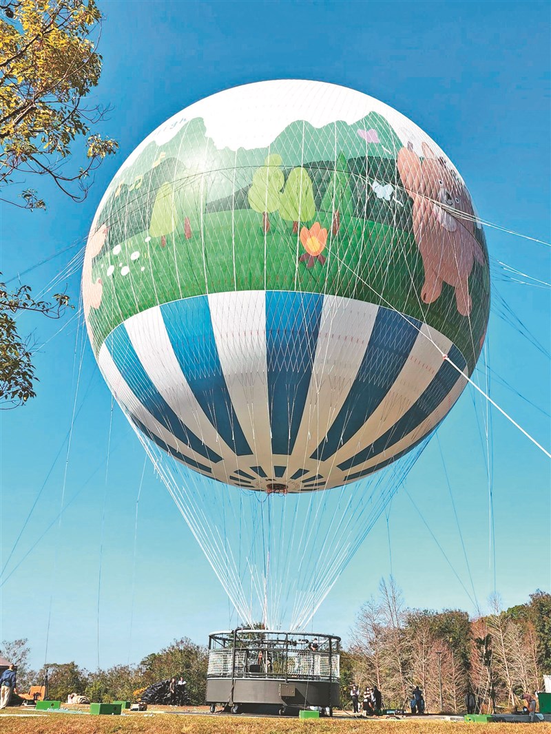 南投縣政府引進最新型繫留式氦氣球,打造全台首座「九九峰氦氣球」觀光體驗設施,近期進入關鍵測試階段,前晚動員逾40名人力組裝與充氣,歷時約7小時完成,於昨天亮相。縣府預計2月營運,屆時搭乘氦氣球升空可俯瞰九九峰地形地貌、鳥嘴潭人工湖及烏溪流域,飽覽自然美景。