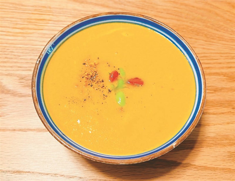 【節氣養生】 立春 春意生發 溫養脾胃 薑黃毛豆南瓜濃湯 文/但漢蓉 |2026.01.31 語音朗讀 53觀看次 字級 大 中 小 圖/但漢蓉圖/但漢蓉圖/但漢蓉 文/但漢蓉《月令七十二候集解》云:「立春,正月節,立,始建也。春氣始而建立也。」立春,是24節氣的起點,也是寒冬退場、春意萌生的第一縷訊息。雖然台灣的風吹來仍帶著冷意,早晚溼涼未散,但陽光已悄悄轉暖,天地之氣也開始由「收斂」走向「生發」。此時最宜順應天時,舒展肝氣、溫養肝膽之陽,讓身心從冬藏的沉靜,慢慢過度到春日的舒朗。冬季是南瓜豐收的季節。金黃飽滿的南瓜,像是大地在寒冷歲末裡留給人們的溫暖禮物。南瓜富含β-胡蘿蔔素(胡蘿蔔素),是極佳的抗氧化營養來源;若再加入薑黃粉與黑胡椒粉,薑黃素的吸收力更能被提升,簡單、溫暖的美味濃湯,同時蘊含著有益健康的強力抗氧化素。南瓜質地綿密、香甜,且屬於低GI食材,對於想要控糖、或糖尿病飲食管理者而言,也格外友善,既能滿足口感與飽足,又不容易造成血糖劇烈波動。立春養生,重點在「生發」。一碗溫熱的南瓜濃湯入口,暖意沿著胃腸緩緩擴散,像是在寒氣未盡的季節裡,先替身體點亮一盞春燈——溫養脾胃、助氣血運行,也能生發春季肝膽的陽氣,讓整個人從內而外漸漸甦醒,迎向春天新的開始。薑黃毛豆南瓜濃湯 食 材 A:南瓜300g、水300cB:枸杞10g、 毛豆50g、橄欖油10g、熱鮮奶100調味料:海鹽1/2茶匙、黑胡椒粉1/4茶匙、薑黃粉1/4茶匙 作 法 ❶將材料A加水煮滾後小火煮5分鐘,關火燜10分鐘,再開一次火滾沸2分鐘,確認南瓜熟軟,入果汁機打成泥狀。❷南瓜泥放入鍋中煮滾,之後放入枸杞、 毛豆煮軟,起鍋前再加入橄欖油、熱鮮奶與調味料即可。 前一篇文章 【風味炸彈】 泰式辣醬 尖頭高麗菜 下一篇文章 【賣菜郎說菜經】 平價人參 白蘿蔔 熱門新聞 01屏東.春日 太陽之子南島風 陶壺印記排灣情2026.01.2602【研朱札記】《臺灣文學》的 誕生地──山水亭2026.01.2703【藝象空間】內觀造景 哲人哲思 ──楊英風的大乘景觀2026.01.2504吃素好體力 霍諾德登頂101 2026.01.2605天元宮聯名幾米 邀您一起賞櫻花2026.01.2506【閃文集】獨特自主的貓咪2026.01.2707【紙粹的家】用故事說故事2026.01.2508【獻給動物朋友的詩】站成蘭花的螳螂與嘗到幸福滋味的蜂2026.01.2909【傳燈六十‧百年仰望】星雲大師一筆字書法紀念特展概述2026.01.3010【視覺DJ】悠哉的鄉間小路2026.01.25 訂閱電子報 台北市 天氣預報 台灣一週天氣預報 相關報導 【蔬活日常】 卷卷菜包粿【賣菜郎說菜經】 平價人參 白蘿蔔【風味炸彈】 泰式辣醬 尖頭高麗菜【蔬食日常】 冬日裡做燉飯【逸饗蔬食】 現代新煮義 香滷大麥片【心經食譜】行深般若波羅蜜多時三品行 作者其他文章【節氣養生】大寒 醋梅金棗醬 一匙酸甜溫潤寒冬【節氣養生】小寒 橄欖酸甜鹹 潤肺解毒【節氣養生】 冬至 清補開胃 蜜蘋果蘿蔔沙拉【節氣養生】 清新暖胃 黃菊三鮮豆腐湯【節氣養生】養藏溫補 桂花蜜小米糯藕【節氣養生】霜降 甘醇溫潤 桂香龍眼小米露