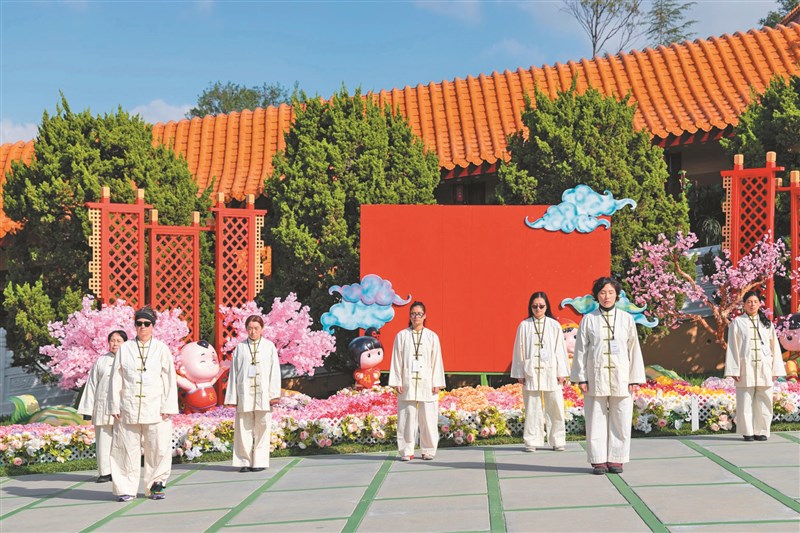 1月24日,64位西方人士於佛光山西來寺參加「一日禪修」,暫時脫離日常節奏,回到最單純的覺知狀態。學員在禁語中,透過立禪、行禪、坐禪、跑香、「食存五觀」食禪,以及「五蘊觀心」司茶等課程,逐步覺察心念的變化。維那慧澄法師提醒,一日禪修只是開始,真正的功夫在於回到日常後。圖為學員於成佛大道體驗立禪。