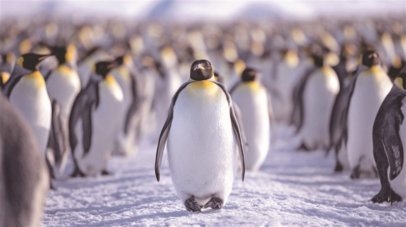 當共讀翻到「南喬治亞島成千上萬國王企鵝」那頁,姐姐驚呼:「也太多企鵝了吧!」妹妹問:「我可以養一隻企鵝嗎?」