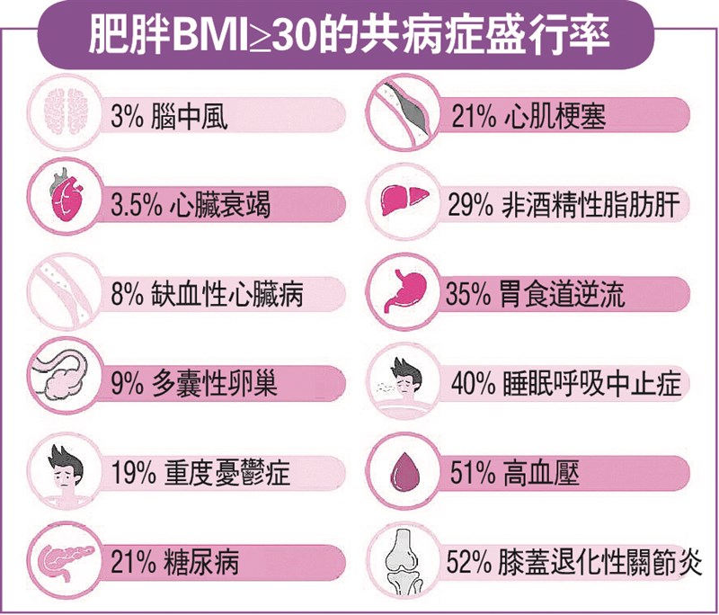 健康瘦身, 遠離糖尿病! 文/陳承勤( 家醫科名醫 ) |2026.02.07 語音朗讀 39觀看次 字級 大 中 小 腰圍可更精確地評估體脂肪分布,內臟脂肪有較高的心臟代謝風險。圖/123RF 飲食控制配合規律運動長期減重,效果最佳。圖/123RF 進行體重管理能有效緩解第二型糖尿病。圖/123RF 圖/新自然主義提供 文/陳承勤( 家醫科名醫 )2018 年發表於《刺胳針》的DiRECT 研究顯示,進行體重管理能有效緩解第二型糖尿病,糖尿病緩解可以降低併發症的風險。減重觀念首要建立:飲食增加的熱量遠超過運動消耗的熱量。減重以飲食為主,運動為輔。肥胖的定義為脂肪在人體各部位組織或器官過度堆積。脂肪組織透過各種發炎機制及釋放更多游離脂肪酸導致胰島素阻抗。糖尿病是身體無法產生足量的胰島素或胰島素阻抗增加,組織無法有效利用胰島素,造成血糖上升。許多研究證實第二型糖尿病發生率與肥胖有重要關聯性。BMI過高、腰圍過粗,要當心!肥胖者的身體質量指數(Body Mass Index, 簡稱BMI)過高,過多的腹部脂肪、脂肪組織造成胰島素阻抗增加並影響β細胞的功能。罹患第二型糖尿病的風險隨著BMI的增加而線性增加。BMI高於20 kg/m2與冠狀動脈心臟病存在強烈關聯性,而且沒有觀察到性別的差異。腰圍可更精確地評估體脂肪分布,內臟脂肪有較高的心臟代謝風險。亞洲人較易產生腹部(內臟性)肥胖,對於胰島素阻抗及第二型糖尿病,腰圍比BMI是更準確的預測指標。WHO 亞太地區將BMI≧23 kg/m2定義為過重,BMI≧25 kg/m2定義為肥胖,這個標準主要考量到亞洲族群即使在較低的 BMI 值下,仍有較高的疾病風險。在過重或肥胖的第二型糖尿病患者,適度減輕5-10%的體重,可使 HbA1c降低0.5%、收縮壓降低5mmHg、舒張壓降低5mmHg、HDL增加5mg/dL、三酸甘油酯降低40mg/dL,而減輕10-15%體重具有更大的益處。研究證實,減重能有效緩解糖尿病2018 年發表於《刺胳針》的DiRECT 研究顯示,進行體重管理能有效緩解第二型糖尿病,糖尿病緩解可以降低併發症的風險。研究的糖尿病緩解定義為「回到了非糖尿病狀態並停止使用降血糖藥物」。研究結果遠超過預期,在12個月時,干預組中近半數(46%)參與者達成了非糖尿病狀態並停用了抗糖尿病藥物。糖尿病緩解率與減重程度密切相關,減重5-10公斤者,有34%達成緩解,減重10公斤以上者,有73%達成緩解,減重15公斤以上者,緩解率更高達 86%。糖尿病緩解並非永久性的。隨著時間推移,部分患者可能會出現體重反彈,導致糖尿病復發,因此維持健康的體重和生活方式非常重要。除了減重,其他因素也會影響糖尿病緩解的機率,例如,年齡、病程、血糖控制情況等。年輕、病程短、血糖控制較好的民眾更容易實現緩解。肥胖BMI≧30的共病症盛行率肥胖有許多共病症如表列(見右圖),積極減重可改善及預防疾病。病態性肥胖通常需考慮是否有新陳代謝相關疾病,例如甲狀腺功能低下。單純飲食控制減重效果不佳,需針對疾病治療才能有效減重。目前健保對於減重手術治療的給付,須符合下列條件: BMI≧37.5,或BMI≧32.5且合併有高危險併發症,如:第二型糖尿病經內科治療後其HbA1c≧7.5%、高血壓、呼吸中止症候群等、須飲食運動控制及減重門診半年以上、年齡介於20-65歲、無內分泌系統異常或其他會造成肥胖的疾病、無藥物濫用或精神疾病。若經飲食及運動後依然減重效果不佳,建議諮詢專業醫師評估並治療。減重以飲食為主運動為輔網路上各種減重方法,到底應該靠運動還是飲食?該執行低醣、斷食,還是高蛋白飲食?在這裡,將以科學依據與實際案例,深入剖析減重的正確觀念,帶您建立穩健且有效的減重策略,從根本掌握「熱量赤字」的核心原則,找出最適合自己的健康減重之道。多年來,面對想減重的民眾、病人或減重專題演講時,我最常問的第一個問題就是:「您覺得減重要成功是飲食還是運動重要呢?」大多數人都回答:「飲食較重要。」少數人回答:「運動較重要。」顯然有部分人認為減重主要靠運動才能瘦。這群人往往認為因為沒有時間運動,或運動量不充足,所以無法減重成功,因此從來沒把飲食控制納入減重計畫中,當然怎麼努力都瘦不下來。減重觀念首要建立:飲食增加的熱量遠超過運動消耗的熱量。減重以飲食為主,運動為輔。單純飲食控制不須運動即可減重成功,運動可增強減重效果、降低復胖機率,飲食控制配合規律運動長期減重,效果最佳。甚至某些人因為有從事運動,誤認為運動已消耗許多熱量,允許自己吃下更多食物及熱量,或者就是為了大吃大喝才努力瘋狂地運動,更加不忌口,反而愈運動愈胖,高估自身運動強度及消耗熱量是常見的盲點。因此,學習認識食物熱量及評估運動消耗的熱量對於減重相當重要。要追求健康的減重,正餐營養要均衡,非正餐多餘熱量需先戒除是非常重要的觀念。(摘自《逆轉糖尿病!》,新自然主義出版) 前一篇文章 【醫學觀點】 活到老,學到老的好處 下一篇文章 【養眼專欄】聰明選豆,吃出植物性營養新高度! 熱門新聞 01佛光山大雄寶殿 逾千僧信迎萬佛2026.02.0102【紀實攝影】花蓮月光寺 台灣後山的人間淨土2026.02.0103【遨遊藝事】巴黎 黛瑪兄弟茶館(Dammann Frères)2026.02.0604【人間行者心】一鏟一撬,心路通行2026.02.0105【書頁微光】《把牠找回來》 流浪少年變身寵物偵探2026.02.0106沙漠獅變海洋獅 為人類上了一課2026.02.0107土方之亂推高成本 房價漲