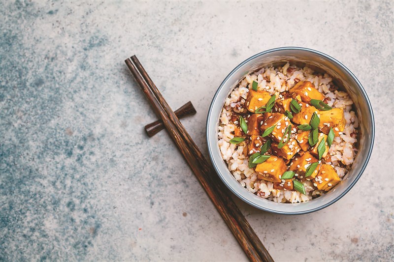 建議飲食應互相搭配,如豆腐配糙米飯,透過不同種類的植物性食物互相支援,能提升營養的吸收利用率。(示意圖)圖/123RF