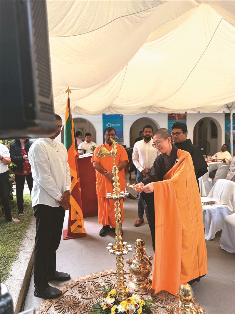 【人間社記者喜琛馬尼拉報導】斯里蘭卡駐菲律賓大使館4日舉行慶祝斯里蘭卡共和國獨立節活動。菲律賓佛光山萬年寺應邀出席,由知勤法師偕國際佛光會菲律賓協會督導委員會督導長李少珠,及理事許美綿、林素玲及馬尼拉第二分會督導施美琪等一行前往使館與會。各宗教代表包括佛教、天主教、印度教、伊斯蘭教,斯里蘭卡旅菲商業界人士與家眷等,近百人共襄盛舉。