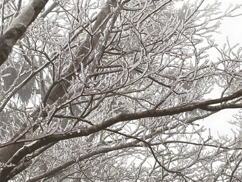 受寒流影響,太平山國家森林遊樂區昨陸續出現冰霰,遊客直呼「太美了」。圖/中央社