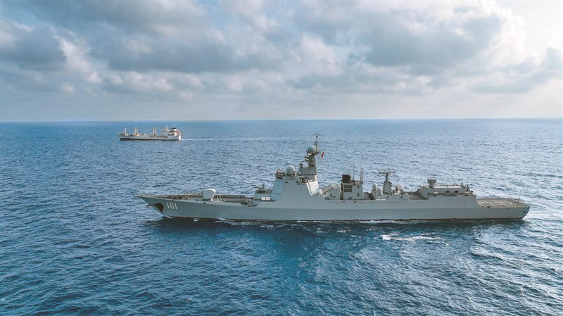 美菲在黃岩島海域聯合演練後,共軍一連5天在南海展開巡航,圖為南海艦隊的052D型呼和浩特艦。圖/新華社
