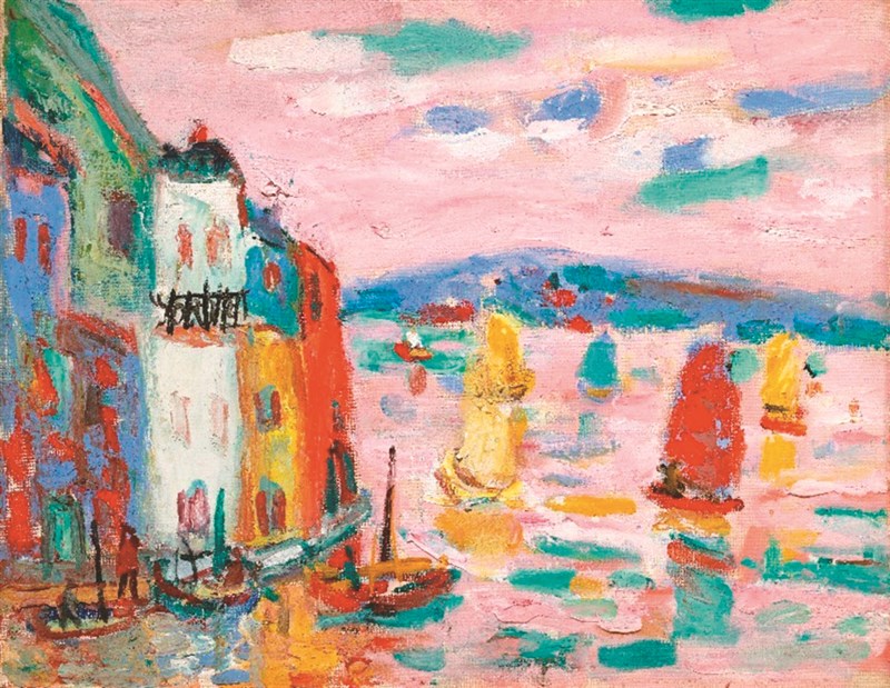 台灣美術界公認的色彩魔術師廖繼春辭世滿50周年,國美館、北美館舉辦「虹霓色彩樂詩:廖繼春的藝術世界」展覽,7日舉行開幕式。圖為廖繼春作品〈風景A〉。