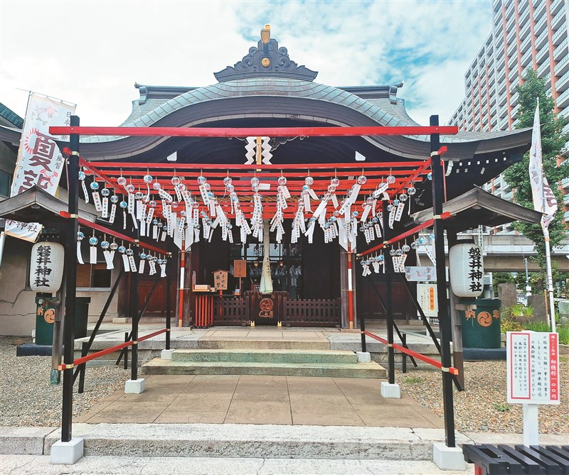 進入園區後,右方便是淨手的木造手水舍;當時適逢夏季,主殿前方及園區掛滿了印有美麗圖案的玻璃小風鈴,下方懸著「磐井神社」的紙片。陣陣微風吹來,叮叮噹噹的聲音帶來了夏意的清涼。神社園區左方有一座小橋,沿著兩側的風鈴走到盡頭,便可見到東海七福神之一的弁財天拜殿,簡潔而莊嚴。
