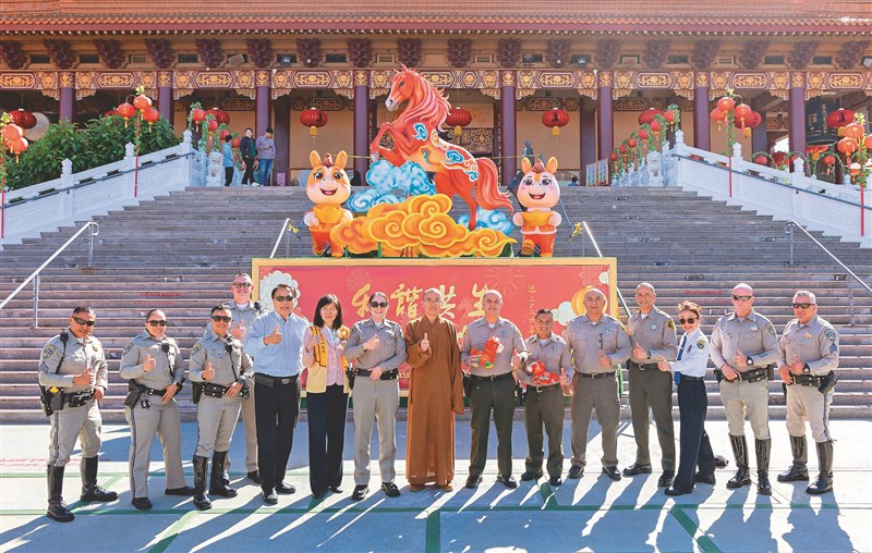 【人間社記者心禹洛杉磯報導】佛光山西來寺4日於香雲堂舉辦新春記者招待會,邀集媒體、警政單位與佛光人共襄盛舉,向社會大眾說明馬年新春活動規畫與交通安全措施,共有21家媒體、28位記者,以及11位警政人員與佛光人等40人出席,展現寺院與社區、媒體及公共部門長期合作的良好夥伴關係。