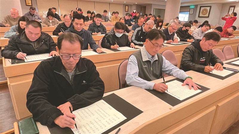 三峽警察分局同仁全神貫注投入抄經,沉澱身心。圖/人間社記者趙裕隆