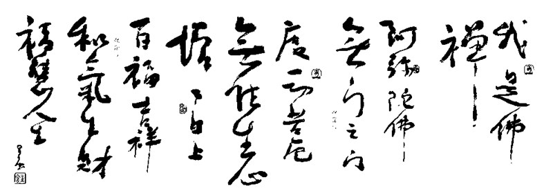 幾年後,在我一筆字寫開來後,儘管我早已是風燭殘年的老人,手抖厲害、幾近眼瞎,只是以模糊的影像書寫大字,排遣歲月,但是各方的徒眾,卻都把我當作出產書法字的寶山,稱我的字為「墨寶」。我一再不准許他們如此稱呼,要大家改口說是「一筆字」,我才肯為他們再寫。為了獲得我的字,大家也都很知趣地不再高抬字的價值了。