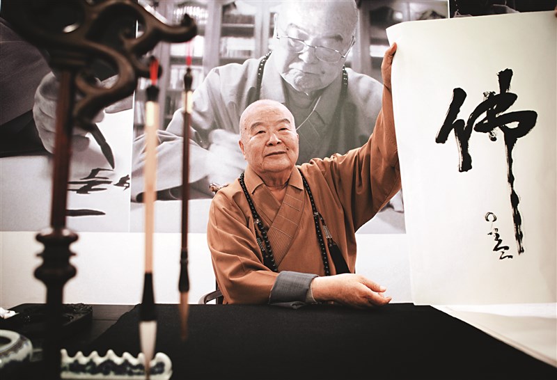 星雲大師寫字,總是滿人所願,隨緣題書。圖為大師寫「佛」字。圖/佛光山提供