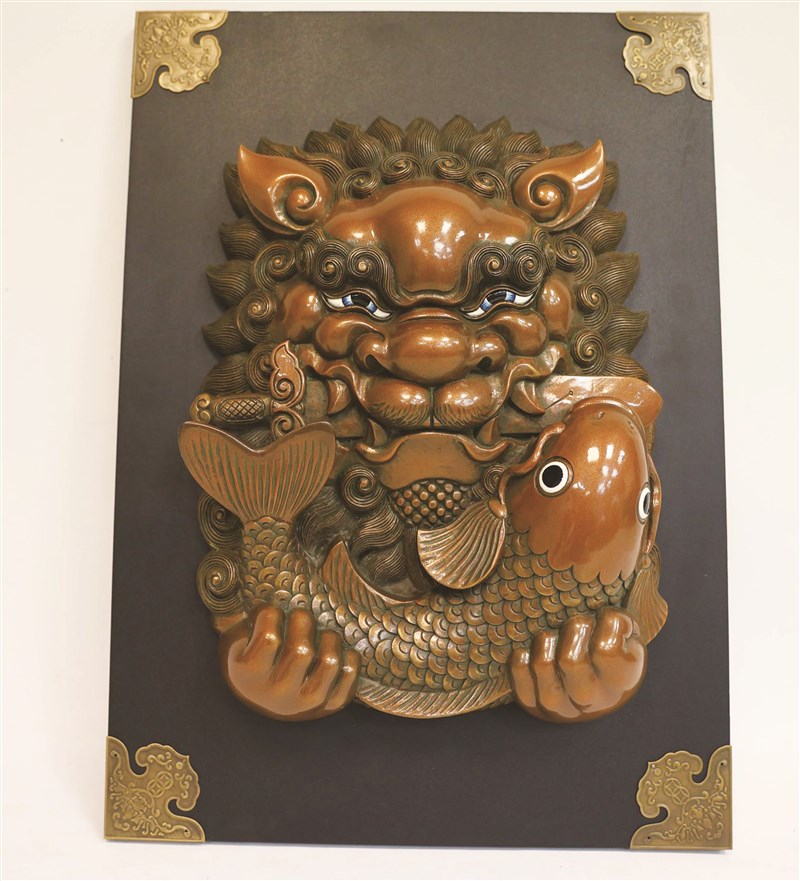陳建智創作的木雕,展現劍獅生氣勃勃、蓄勢待發的動感,炯炯有神的眼睛及迎風舞動的鬃毛,顯示其獨特的風格與純熟的技法。獅子為百獸之王,可驅魔逐厲,屬吉祥瑞獸,劍尖向右者代表「祈福」,劍尖向左者代表「辟邪」。