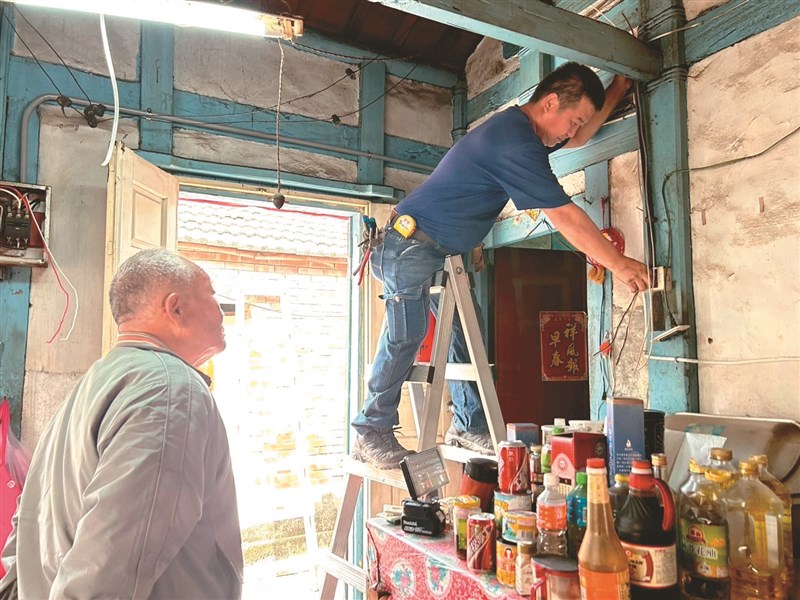 每逢歲末,弘道老人福利基金會啟動「寒冬助老」的「除舊布新」服務,除了協助長者整理居家環境、降低跌倒與囤積風險,更進一步進行居家健檢,檢視用電安全、汰換必要設備,為孤老守住安心過冬的基本防線。圖為弘道及時用電安全檢測與媒合水電師傅修繕,化解阿勇阿公60年老舊三合院電線危機。文/記者陳玲芳