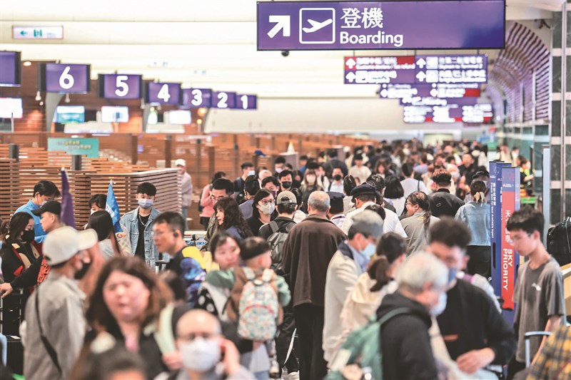 春節連假掀出國熱潮,桃園國際機場公司預估,昨旅客量攀升至16.9萬人次,超越2019年春節期間單日16.6萬人次高峰。圖/葉信菉