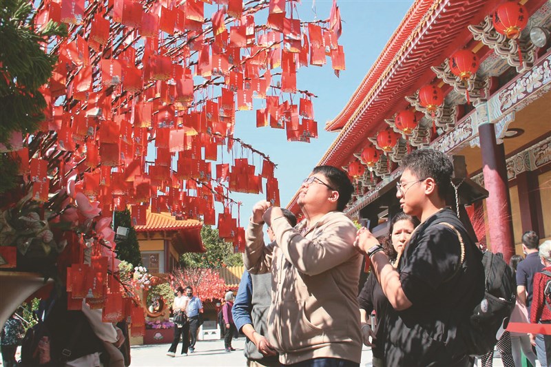新春期間,每晚舉行上燈法會,2月17日至22日(大年初一至初六)上燈法會後,緊接著「吉星高照」無人機高空燈光獻禮,及新春禮千佛、燒年香、叩平安鐘、寫祈福卡。上燈法會有兩處,包括:2月17日至3月3日(大年初一至十五)每日晚間8時在成佛大道、3月4日至3月18日每日晚間7時在大雄寶殿。
