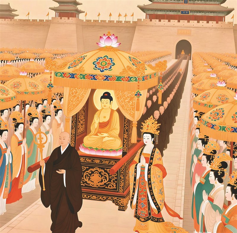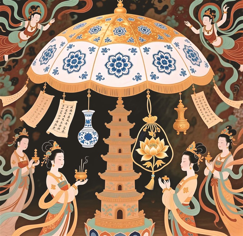 【華蓋瑞年】華蓋護闉 旋城迎春 文/嚴慕容 |2026.02.22 語音朗讀 79觀看次 字級 大 中 小 「安傘旋城」源自敦煌204、321洞窟佛頂傘蓋。圖為北京故宮博物院敦行故遠華蓋特展 。圖/中華華蓋藝術文化研究協會虔誠抄寫經文,將願望化為字句,放入納經寶瓶或華蓋吉祥袋,繫掛在華蓋上。圖/中華華蓋藝術文化研究協會AI生成現代版寺院「安傘旋城」。圖/中華華蓋藝術文化研究協會晚唐五代的敦煌,大白傘蓋陀羅尼信仰如春風化雨,深入人心。 圖/中華華蓋藝術文化研究協會安傘旋城儀式,華蓋如佛頂光明,經咒注入〈安傘文〉,此乃因儀軌而生之法章。圖/中華華蓋藝術文化研究協會「傘型佛七寶華蓋」取材敦煌莫高窟220洞窟藥師七佛華蓋。 圖/中華華蓋藝術文化研究協會「32道銅鏤空工序傘狀華蓋」取材莫高窟321窟「十輪金剛經變」,為纏枝寶相花蓋,內層黃金線刺繡蓋。圖/中華華蓋藝術文化研究協會 文/嚴慕容過年期間,家家戶戶張燈結彩,楹聯映日;佛寺道場幢幡高懸,華蓋如雲,以最莊嚴的姿態迎接新春。在中華傳統年節的瑰麗畫卷中,敦煌的「安傘旋城」儀式,恰似一幅流光溢彩的佛教盛景,以華蓋(傘蓋)為核心象徵,演繹著一場跨越千年的祈福盛典。此儀式不僅是僧俗共襄的佛教盛事,更是一場將城市空間升華為「聖域」的宗教實踐,為新春注入無盡祥和。法蓋護國 佛願安邦晚唐五代的敦煌,大白傘蓋陀羅尼信仰如春風化雨,深入人心。源於印度密教的《大白傘蓋佛母陀羅尼經》,歸義軍政權時期,此信仰與敦煌「華蓋護城」之儀互融。西元902年,歸義軍節度使張承奉自立為「西漢金山國天子」,雖面臨多方挑戰,仍以虔誠之心引領百姓共沐佛恩。正月二十三,發起「安傘旋城」儀式,以經文功德為核心,祈求護國息災、家家平安,為城邦注入祥和之力。寶蓋凝願 經覆骨芯四眾弟子虔誠抄寫經文,將願望化為字句,再放入納經陶瓷寶瓶;或親手縫製華蓋寶相花吉祥袋,層層蓮花、朵朵牡丹,附入祈求健康平安、財富榮華的小札,繫掛在華蓋骨架內部。華蓋以白綃絲綢覆面,竹木金屬為骨,頂置金銅寶珠,緣垂鈴鐺清音,面刺陀羅尼咒,嵌微型佛像、舍利,每一細節皆彰顯佛母慈光。座座華蓋皆成為承載全城祝願的中心,象徵新年吉慶、福慧雙增。幢蓋鎮城 梵音繞梁由皇室與地方官員主導,與寺廟共同舉行「安傘旋城」儀式啟幕,大眾齊聚州城四門,結壇設供,幢傘巍然矗立,如佛陀慈光俯瞰眾生。在華蓋之下焚香、擊鼓、頂禮,僧眾與軍官高舉寶傘沿城門街道巡行,四眾恭迎跪拜。傘行如雲、咒音如雷,歡呼聲中洋溢著團圓喜悅。傘映佛慈 域鑄安瀾聖域塑造「安傘」與「旋城」結合,乃經咒、幢蓋與佛眾之交響。與行像節、燃燈節、施粥等活動共構敦煌新年福吉。安傘旋城儀式,華蓋如佛頂光明,經咒注入〈安傘文〉,此乃因儀軌而生之法章。化華蓋為移動聖域,誦經聲如梵音繞梁,持咒似清泉潤心,燃燈映夜,施粥暖心。此間祈願平安永駐、災厄遠離、五穀豐登、家家歡笑。最後,法師領眾恭誦敦煌〈安傘文〉,圓滿完成安傘旋城莊嚴盛會。維某年某月某朔某日,弟子某甲等,謹以香花燈塗,奉請大白傘蓋佛母、毗沙門天王、諸天龍神、護法善神降臨道場。伏願佛母垂慈,以白傘蓋覆護此城;天王威德,率諸眷屬鎮守四方。今為此城四門,安置寶傘,建立壇場。願此傘光,遍照城內,無有隙地;願此傘力,堅固如山,永無傾壞;願城內人民,家家戶戶,悉得安隱,無有災障;願城外怨敵,不敢逼近,自然退散。以此功德,回向法界有情,同登覺岸;此土人民,安樂豐足。許經懸蓋 旋塔迎祥在敦煌安傘旋城儀式中,幢傘華蓋不只是佛教莊嚴具,更是「聖域結界」與「願力載體」的完美融和。若將此精神轉化為現代佛寺年節慶典儀式活動,可設計「抄經祈願及安傘旋塔」的華蓋專屬儀式,讓信眾在年關之際親近佛法,表達新年期許,共享歡樂時光。墨染菩提 心印真如抄經祈願:寺廟內設「抄經祈願區」,提供《心經》、〈大悲咒〉或大白傘蓋陀羅尼經節錄,佛眾以恭敬心抄寫,於經文末尾書寫新年願望——健康、平安、事業順利、家庭和樂等。抄經過程中,法師可引導信眾反思生命意義,感受佛法滋養,增添心靈喜悅。法師的開示如清泉流淌,引領信眾在墨香中體悟生命的本真,讓抄經成為心靈的洗禮。傘懸千願 願逐蓋揚華蓋懸願:抄好的經文與許願書,用青花瓷或柴燒華蓋寶瓶或繡有華蓋寶相花的吉祥袋裝入,懸掛於寺廟主殿前或迴廊下的華蓋之下。每座華蓋象徵佛陀庇護,願文代表四眾,將期許交託三寶與白傘蓋佛母守護。此景如繁星點亮夜空,寓意新年光明燦爛,願力如法雨滌塵,潤澤群生。大眾仰望華蓋,心中充滿法喜與希望。繞塔觀心 步步蓮開經行旋塔:由主法法師帶領大眾,執擎小華蓋、華蓋香薰球,繞行塔寺,誦經持咒,象徵安傘旋城祈福精神。繞行時,法師開示「華蓋結界」與「白傘蓋護城」法義,強調團結互助的喜悅。每一步都踏在祝福的法喜上,每一聲梵音咒語都迴盪在虔誠的心間。蓋集千祥 春頌福章統一安傘:儀式尾聲,所有華蓋與願文統一安置於大殿簷下或祈願牆前,形成「願力華蓋林」,象徵在佛陀與白傘蓋佛母庇護下,四眾共同祈禱,人心和善、萬事繁榮。古智新詮 福佑當方華蓋結界,繞行守護:敦煌安傘旋城「結界—繞行—守護」的結構,轉化為現代大眾易參與的抄經、祈願與經行活動。在華蓋下
