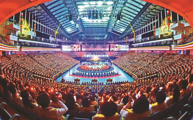 點一盞心燈,讓祈福的力量超越距離,照亮世界,圖為去年逾萬人在小巨蛋參加禪淨共修。
