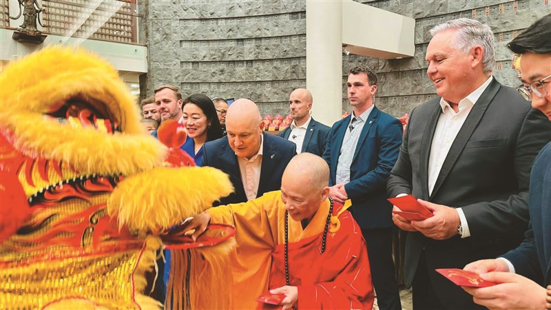 【人間社記者王霂陽奧克蘭報導】紐西蘭北島佛光山於2月16日大年除夕夜慶祝農曆新年,逾5000人來寺參與跨年盛會,共同迎接馬年。紐西蘭總理盧克森(Christopher Luxon)率團隊蒞臨道場與眾同賀,並有警察部長兼民族事務部長Mark Mitchell、國會議員Nancy LU、Ormiston警區社區服務警官Richard Bracey、Howick Local Board委員Damian Light、西北大學副教授謝志斌,共同向紐西蘭民眾拜年。