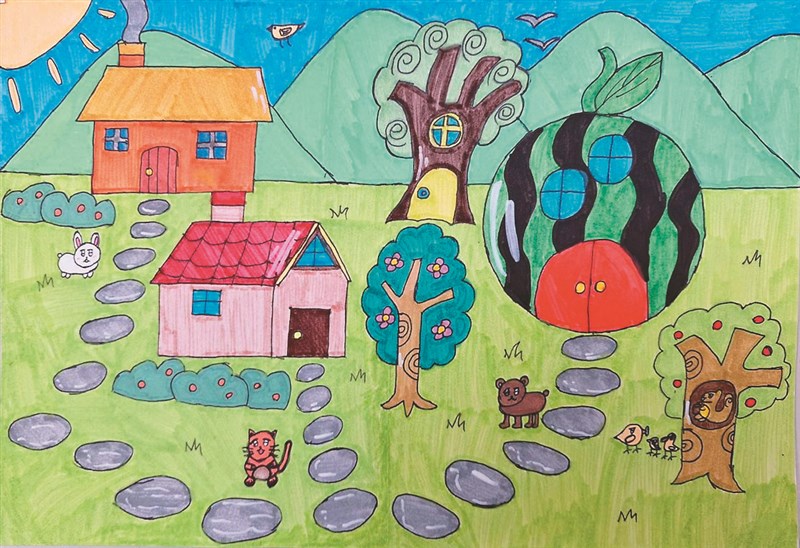 快樂塗鴉簿 動物的家 徐敏瑄/苗栗縣卓蘭國小五年丙班