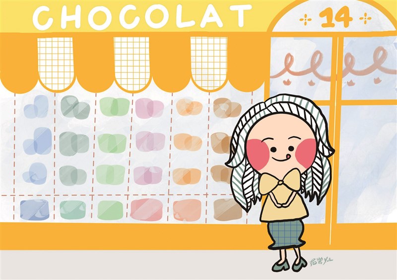 巴黎的鴿子很聰明,會在咖啡廳的戶外座位等可頌碎屑吃到飽。我看著鴿群享用大餐,一隻大鴿子迎面飛來突襲,我為了閃躲趕緊跳到一旁壓低身子,抬頭才發現隔壁是一間巧克力專賣店。午後陽光明媚,櫥窗亮得像鏡子,需要靠近玻璃才看得清楚店內,我恰好與穿著圍裙、戴粗框眼鏡的老爺爺對上眼,我們互相點點頭,他示意我進店參觀。